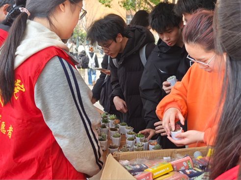 3月12日,植树节主题活动在义丰楼顺利开展。志愿者们以“废旧书本、空塑料瓶兑换绿植”为载体,践行“回新转益”环保理念,吸引师生广泛参与,同时宣传资源回收、植绿护绿的重要意义。活动既实现了废旧物品的再利用,又传播了绿色低碳的生活理念,让环保意识深入人心,用实际行动为春日校园增添了盎然绿意。