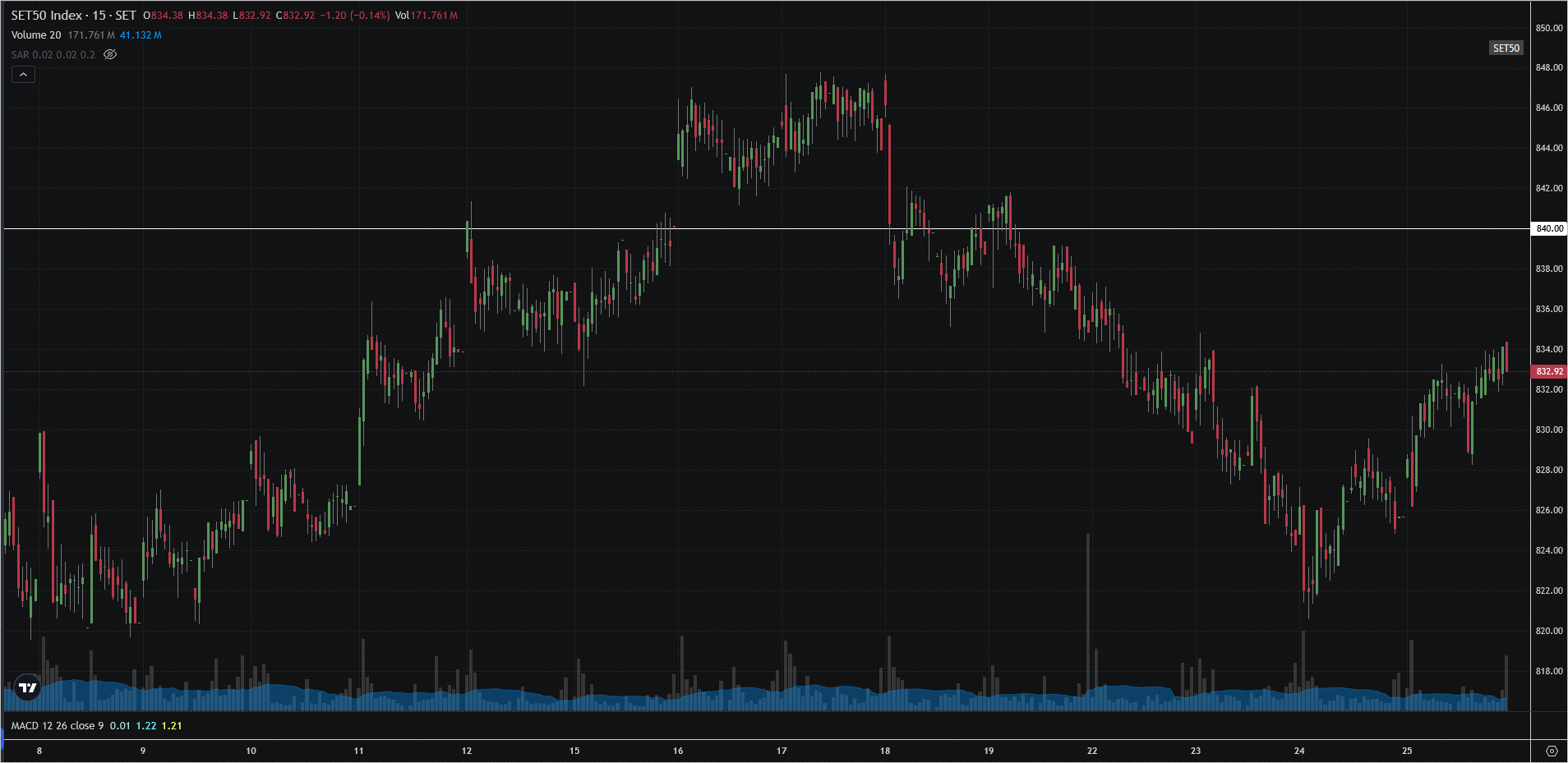 2025.09.22 836.18 837.38 829.34 829.34 -5.52 -0.66% 18,855.32