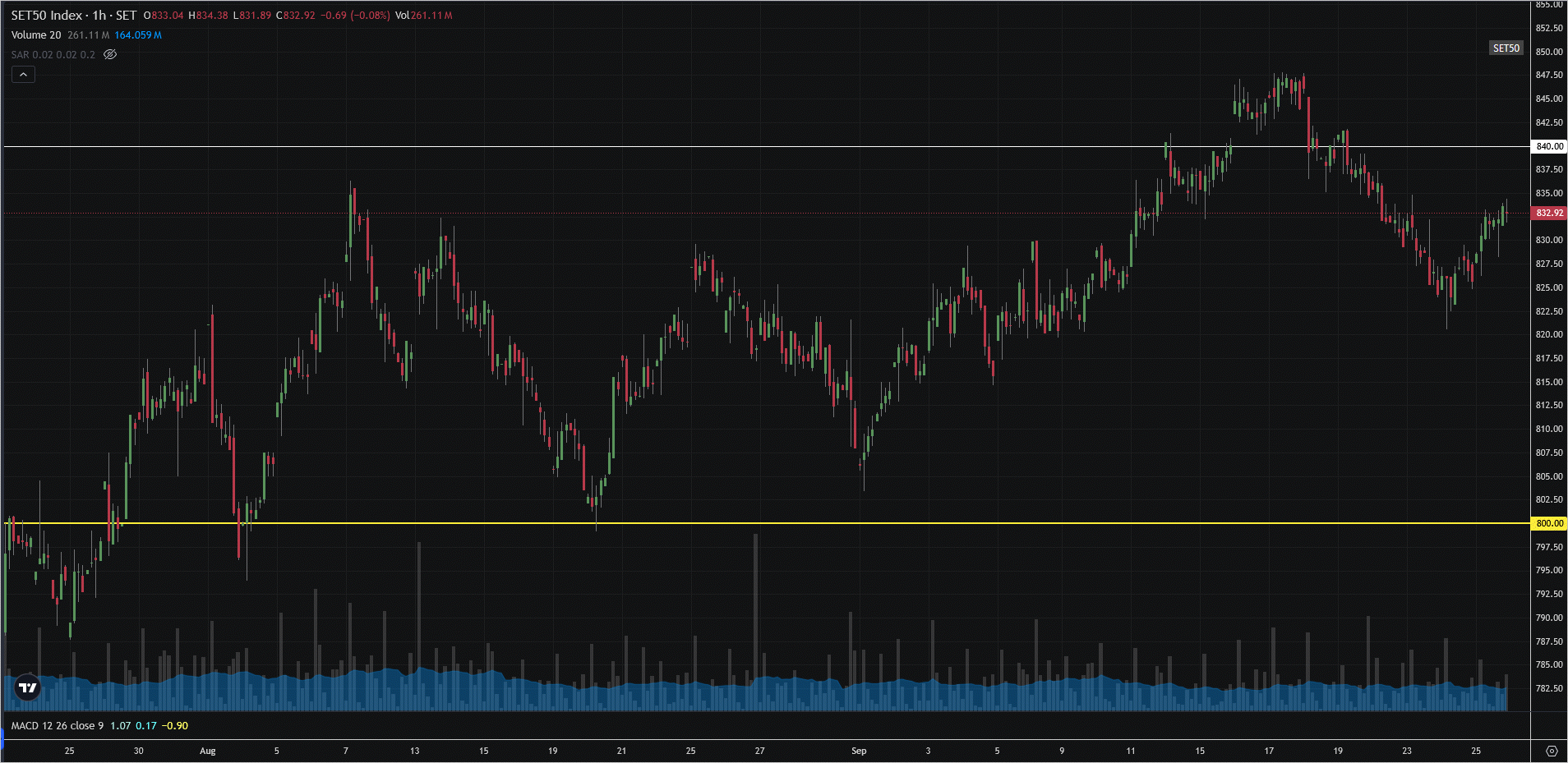 SET50: EOD 25 กันยา 2568,   832.92,  +7.24,  +0.88%