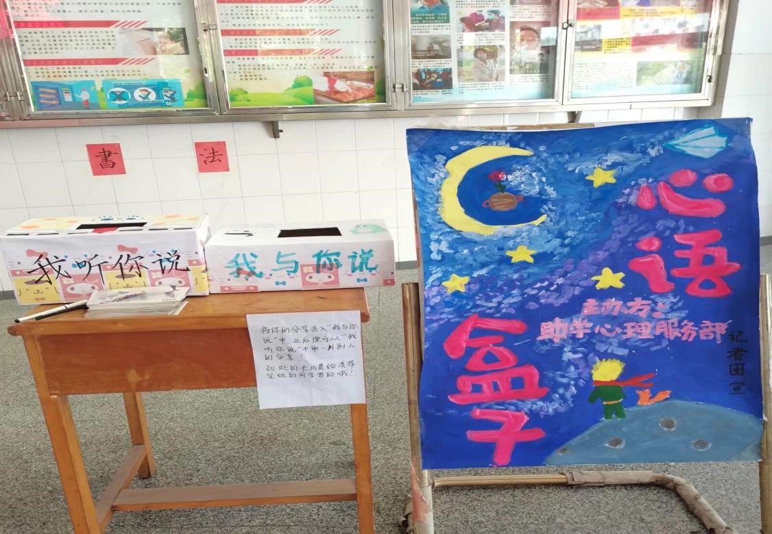活动中,同学们可将不愉快的事情写在纸条上,放入“我与你说”盒中,也可以从盒子抽取他人的纸条,了解其他同学的故事,以文字的形式传递真情与温暖。