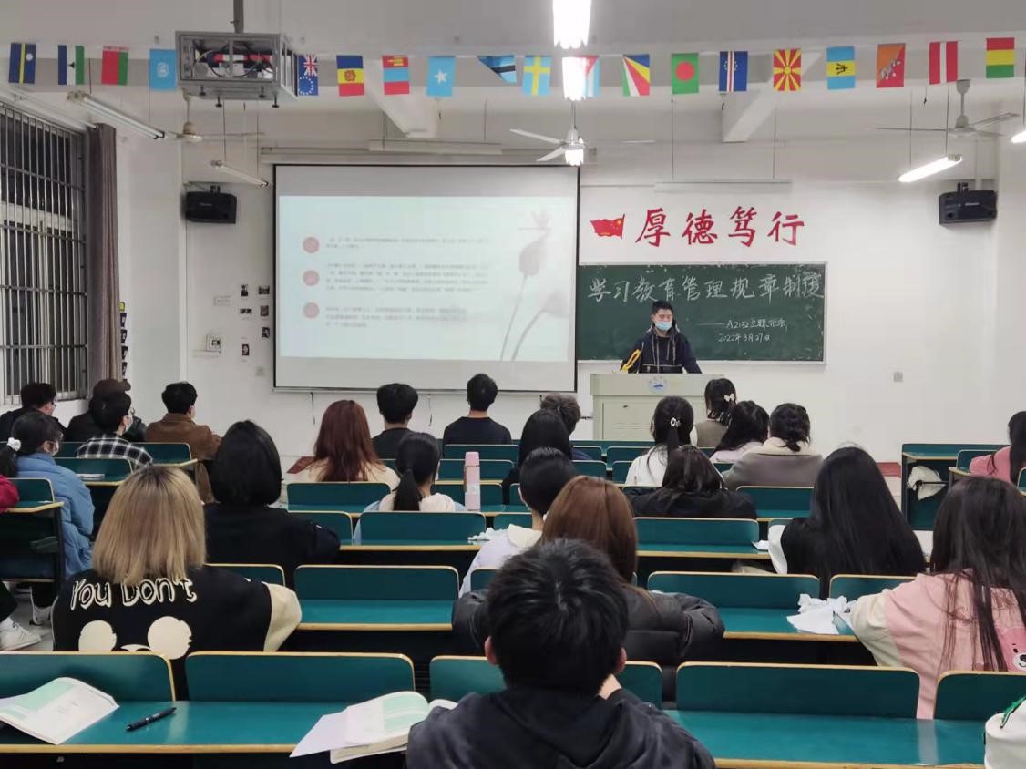 为进一步深入学习教育部教育管理规章制度,切实增强学生遵章守纪意识,3月21日晚,永利y23455于义丰楼组织开展以“学习教育管理规章制度,增强遵章守纪意识”为主题的班会。本次班会由各班团支书主讲,永利y23455全体学子参与。