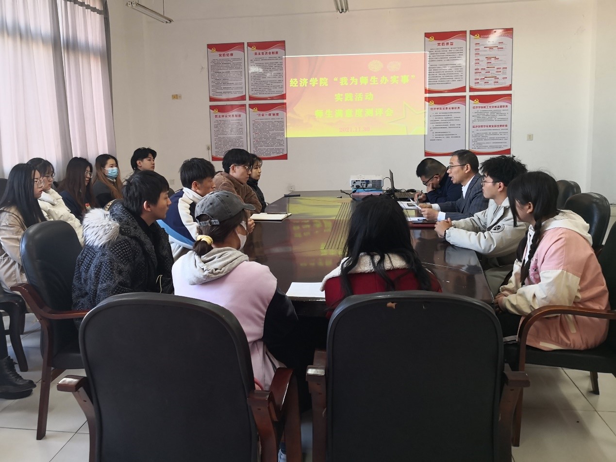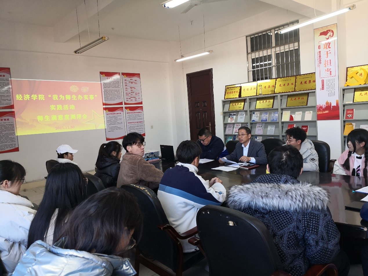 2021年11月30日上午,永利y23455在义丰楼619会议室召开“我为群众办实事”实践活动师生满意度测评会,学院党委书记漆晗东出席并主持会议,教师代表、学生代表参加本次测评会。