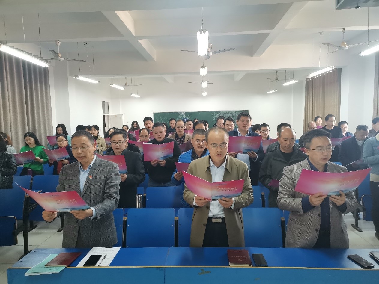 会议前,学院全体领导班子成员和全体教师齐唱红色歌曲《我们走在大路上》。会上,漆晗东书记领学了《中国共产党第十九届中央委员会第六次全体会议公报》《中共中央关于党的百年奋斗重大成就和历史经验的决议》和习近平发表在《求是》上的重要文章《坚定理想信念 补足精神之钙》。
