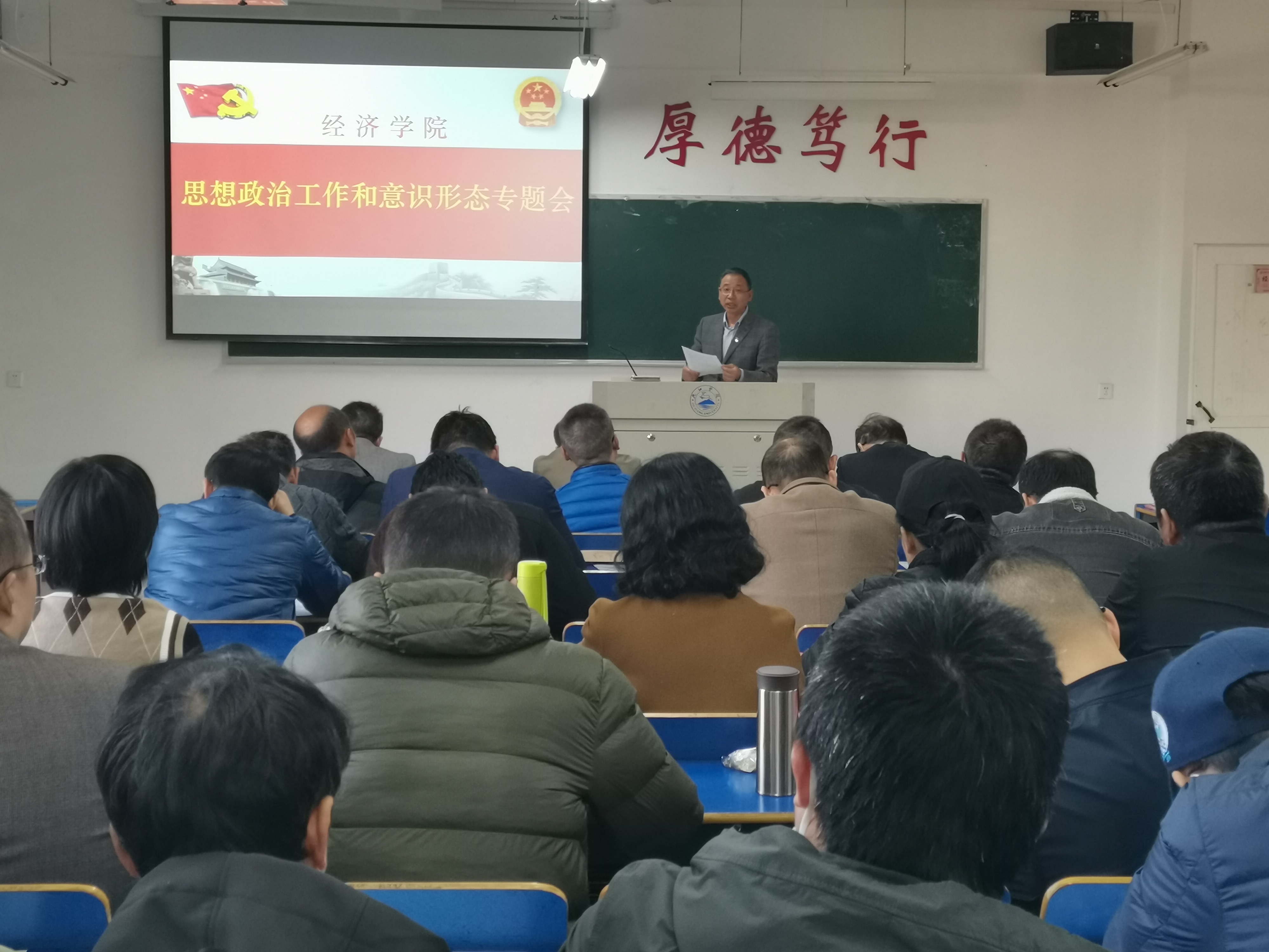 为深入贯彻落实意识形态与思想政治工作会议精神,周密部署学院意识形态与思想政治工作,统一思想,形成合力,全面提升学院思想政治工作水平,11月17日下午,永利y23455在义丰楼502召开思想政治工作和意识形态专题会。我院党委班子成员和全体教师参加了此次学习会,会议由党委书记漆晗东主持。