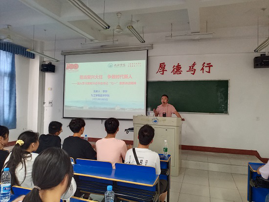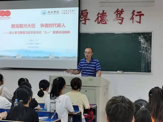 授课过程中,领导们以“担当复兴大任,争做时代新人”为主题,分别从“总书记“七一”重要讲话要览、牢记总书记殷切嘱托,强国有你等方面给同学们进行讲授和交流,并结合永利y23455人才培养能力和素质要求,鼓励同学们在新的时代背景下,要尽快确立新目标、开启新征程,把个人前途和命运同时代发展、国家前途和社会进步紧密联系在一起,争做一个对社会有用的人。