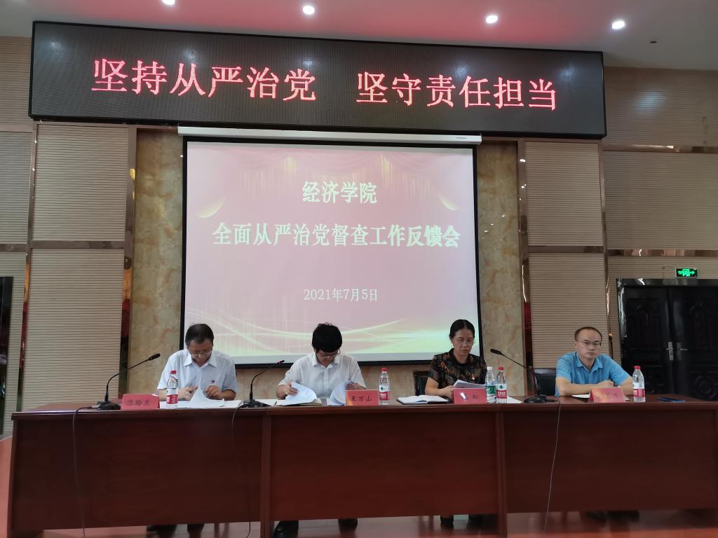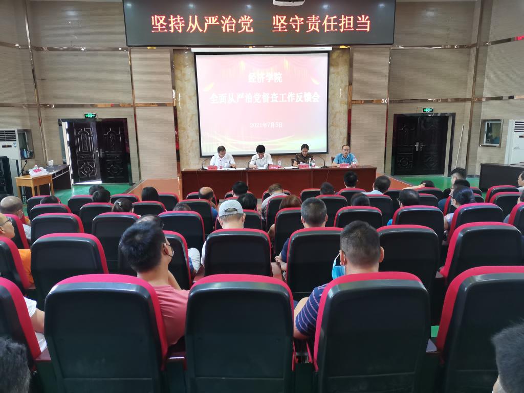 7月5日上午,永利y23455在香远楼三楼报告厅召开全面从严治党督查反馈会,yl23455永利集团副校长王万山、督查组组长魏松、督查组成员、永利y23455领导班子及全体教职工出席大会,会议由党委书记漆晗东主持。