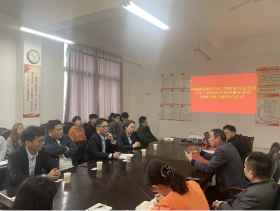 为了贯彻落实党中央“创新、协调、绿色、开放、共享”的发展理念,创新基层党组织活动形式,促进组织间相互学习、共联共建、共享共赢,永利y23455教工第三支部(下简称“第三支部”)结合学科实际和支部党员的学术专长,以党建引领,积极开展对交流与合作。4月14日下午,第三支部和中国建设银行九江浔阳支行,签定了“基层党组织共联共建合作协议”。