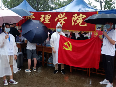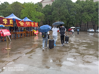 在九江火车站,学长学姐热情接待新生,并安排他们坐上yl23455永利集团接他们的校车。在yl23455永利集团内,迎新时,下着小雨,党支部的学长学姐热心接待从外地赶来读书的学生和家长,面对他们的疑惑,耐心解答。