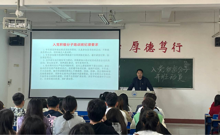 为进一步做好党员发展工作,严把入党“第一关”,提高入党积极分子的思想政治素质,2022年11月2日永利y23455举行入党积极分子培训班开班动员大会。在开班仪式上,丁晓权老师讲述了培训计划、安排及注意事项,要求参加培训的学员课上课下认真思考,当先锋,作表率,以优异成绩接受组织的考验。