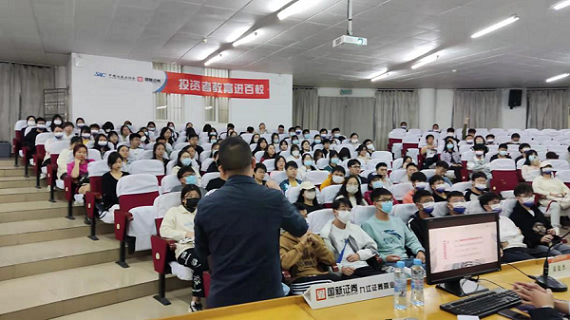 在活动中,邀请了国新证券讲师吴廷杰给同学们介绍了典型非法证券期货活动、典型案例、防非小妙招以及投资者权力救济渠道,全面细致的讲解了防范非法金融的相关知识,讲座还通过与学生互动,加深了学生对防范非法金融、远离风险的能力与认识,提高了同学们识别、防范非法证券期货活动的意识和能力。