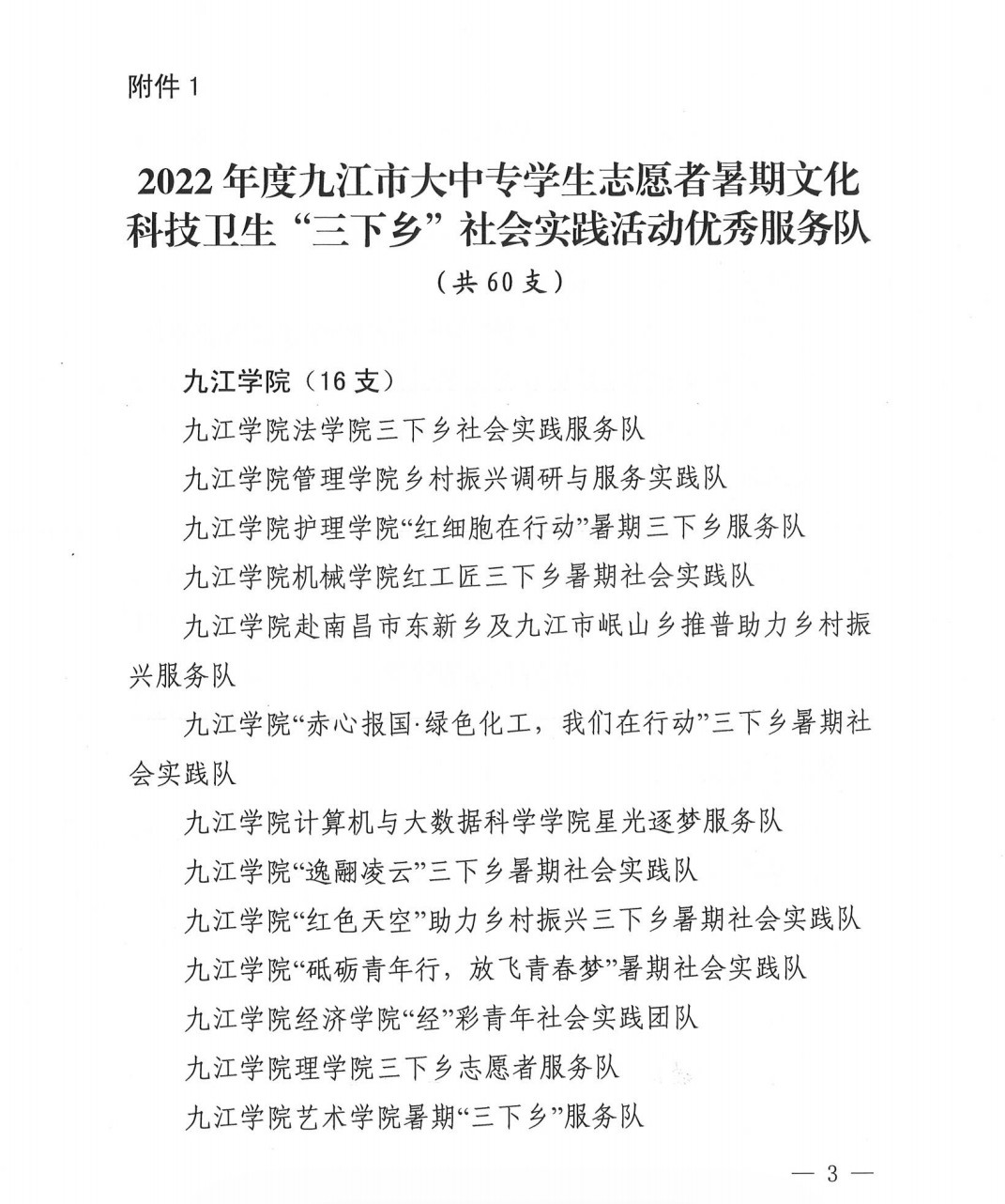 为深入学习党的二十大精神,贯彻落实习近平总书记关于青年工作的重要思想。6月末,永利y23455“经”彩青年社会实践团队在共青城市,开展以“青春奋进心向党,实践入乡焕新貌”为主题的“三下乡”社会实践活动,并荣获“优秀服务队”称号。