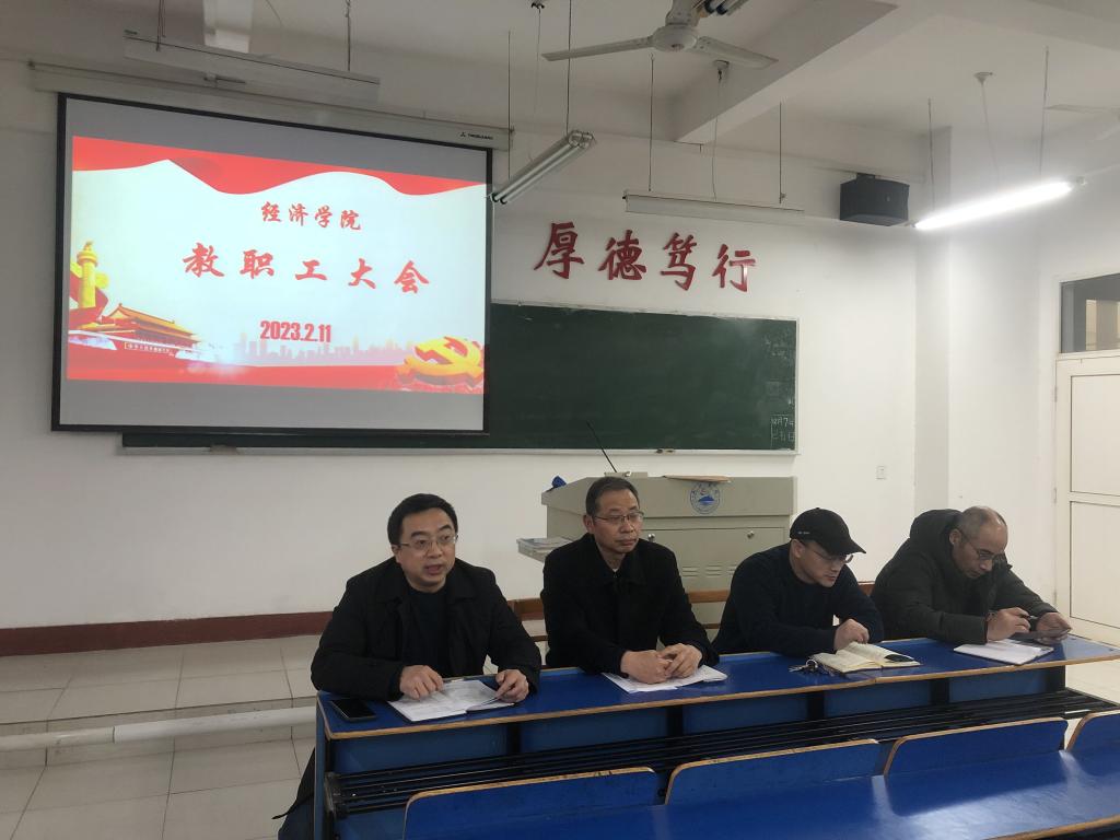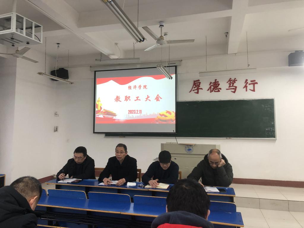 2月11日下午,我院在义丰楼502召开教职工大会,会议由党委书记漆晗东主持,领导班子成员和全体教师参加。