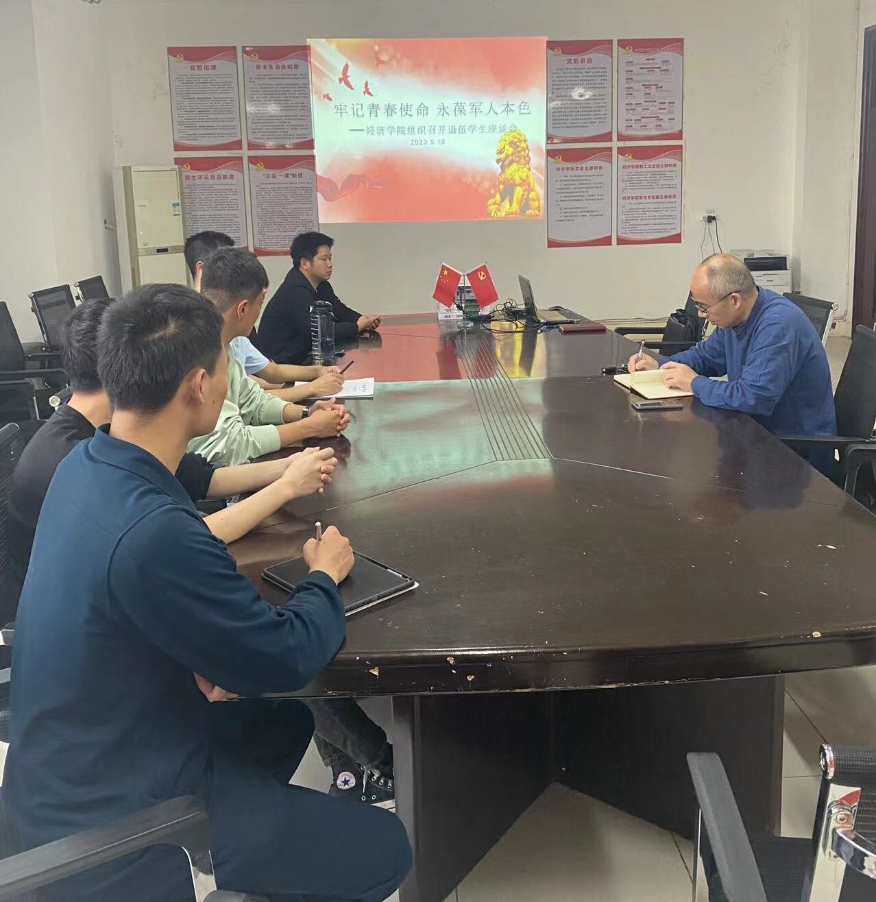 为更好地做好退伍学生教育与服务工作,加强与退伍学生间的沟通交流,永利y23455于5月10日下午在义丰楼619召开退伍学生座谈会。学院党委副书记谢忠、资助负责人和退伍学生参加了会议。