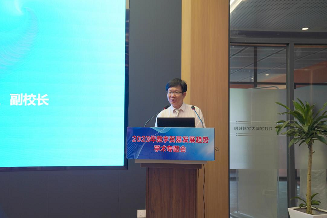 6月9日—10日,由中国国际贸易学会和yl23455永利集团共同主办,我校永利y23455承办的“2023年数字贸易发展趋势学术专题会”在我校成功举办。来自中国国际贸易学会、辽宁大学、对外经济贸易大学、浙江大学、商务部研究院、厦门大学、江西财经大学、yl23455永利集团、浙江农林大学的9位专家学者先后进行主题报告。 中国国际贸易学会副会长兼秘书长边振瑚,中国国际贸易学会副会长李钢,我校党委书记赵伟,副校长王万山、夏启国出席会议,来自省内外高校和九江市企业代表近120人参加研讨会。