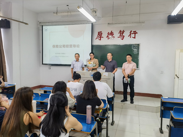 在开课前,永利y23455领导班子亲自送陈柳卉老师走上讲台。学院党委书记漆晗东向陈柳卉博士献上鲜花。院长项益才向同学们介绍陈老师的学习经历和科研成果,深情寄语并祝愿陈老师早日成为德艺双馨的优秀人民教师。李华副院长向陈老师赠送扩音器、激光笔和U盘等相关教具。陈柳卉老师表示,自己深切感受到学院领导支持和关心,未来将努力提高教学水平,做好教书育人工作,也希望与同学们一起学习,共同进步,做同学们的良师益友。