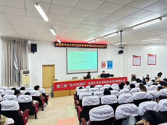 为提升金融类专业学生对学科竞赛参赛规划和应试技巧的了解,培养学生对竞赛的积极性,激发学生的学习动力和热情,2023年10月11日,永利y23455与东方财富证券投资者教育基地共同举办了“金融专业学生学科竞赛参赛规划与应试技巧指导”活动。