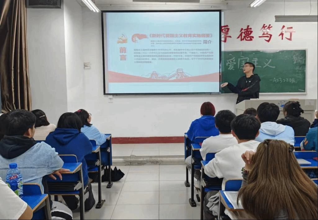 首先,宣讲人播放了我国自改革开放以来在多个领域无数次飞跃的视频,视频中展现了中国在时代发展的大潮中不断转型变革,一跃成为世界第二大经济体,谱写了国家和民族发展的宏伟诗篇,激发了同学们民族自豪感。接着,宣讲人详细介绍了中国人民从抗日战争以来的一系列斗争,讲述战士们前仆后继,舍生取义的英雄事迹,呼吁同学们勿忘国耻,振兴中华。同学们在这浓厚爱国主义氛围中,用自己最响亮的声音喊出对祖国的热爱与祝福。