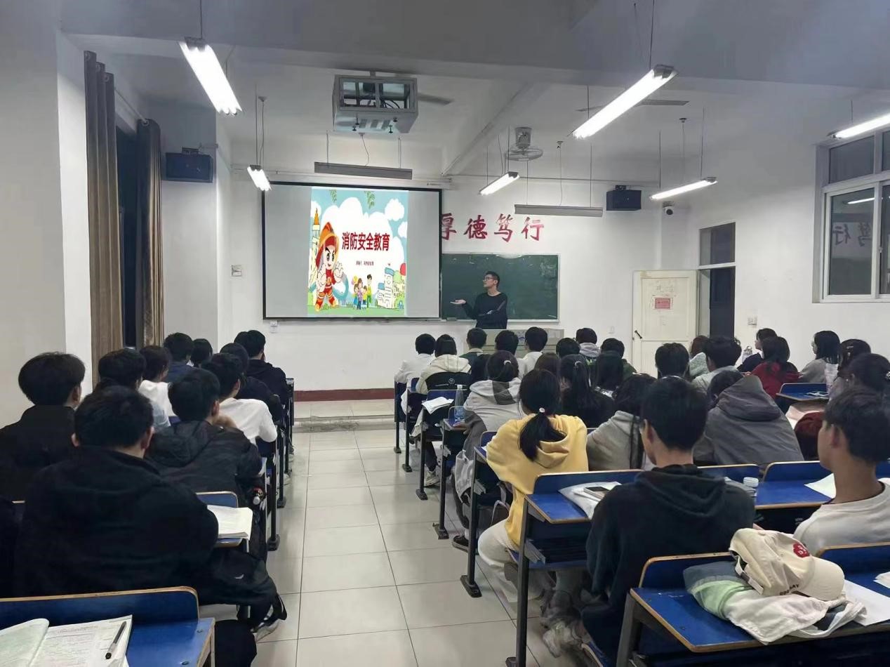 会上,各班主讲人结合消防安全制度以及各类火灾案例,对如何树立公共消防意识、预防、杜绝可能引起消防事故的内外隐患,个人面对突发火灾事故应如何进行救灾及逃生等方面进行了全面讲解。班会期间,主讲人组织大家参加网上消防知识答题,强调有关加强消防安全的“四个能力”建设、掌握“三近”的安全原则,提醒同学们遇到火灾可以大声呼喊求救,及时拨打119火警电话,保持冷静,安全逃离。最后,主讲人带领同学们诵读消防宣传标语,使消防要领内化于心外化于形,从而使同学们能够更进一步地将消防要求落实。