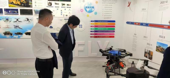江西翱翔星云科技有限公司董事长谭翔热情接待了王校长一行,王校长参观了公司无人机及数字经济展厅和无人机群载发指挥系统。双方就无人机与数字经济产业、人才培养、学生就业和实训等问题进行友好交流。