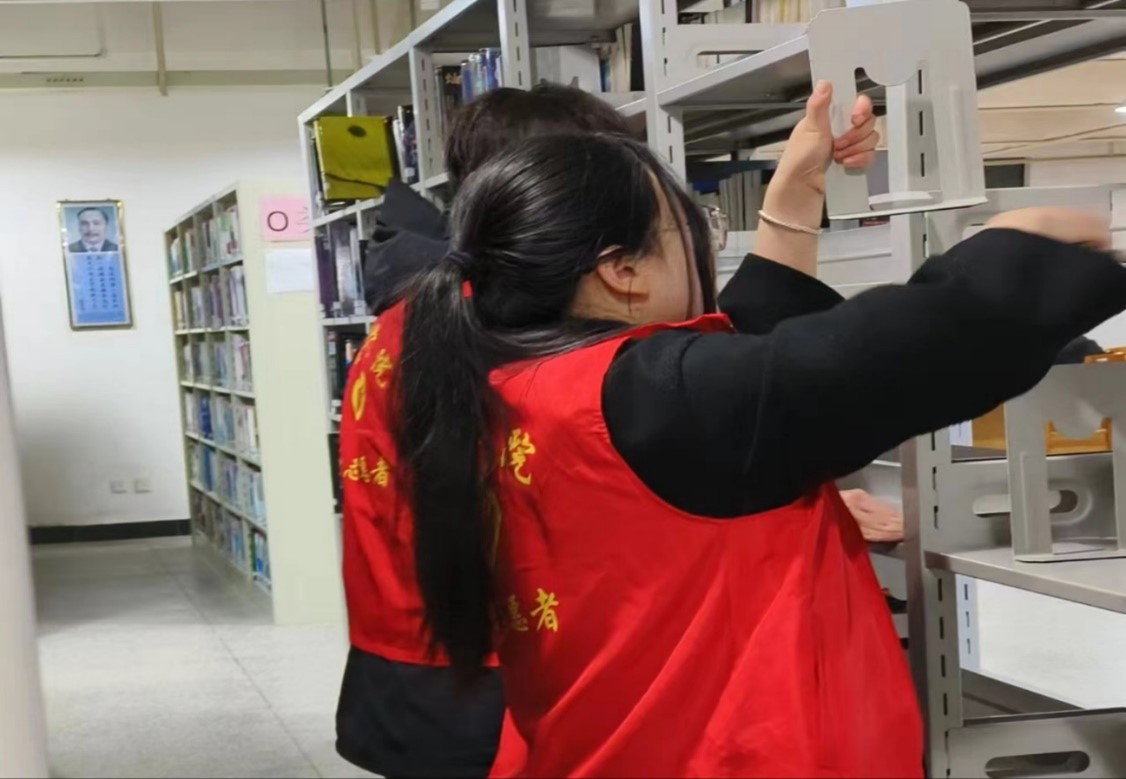 活动开始,志愿者们按照分配的任务配合默契,擦拭书柜的抹布一旦脏了立刻有人提装有干净水的水桶赶来,水桶里的污水也总能被立刻撤换,提供干净的水以便清洗抹布更好拭去书柜上的灰尘,走廊上的垃圾,学习桌下纸张,都逃不过志愿者的眼睛,他们一丝不苟地清理每个角落,为读者创造出一个干净清爽的阅读环境,他们的付出就像春风化雨,润物无声,但却让人感受到一种温暖的力量。