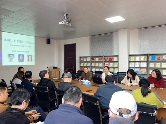 为加强学院心理健康教育工作,做好学生心理排查工作,推动辅导员、班主任更系统有效地开展心理辅导和谈心谈话,进一步提升育人能力,3月21日下午,永利y23455在义丰楼619开展学生心理健康工作培训交流会,本次培训邀请教育学院党委副书记(原心理咨询中心主任)吴燕老师主讲,永利y23455党委书记漆晗东主持,全体辅导员、班主任参加培训。