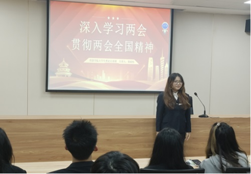 会上,通过集中观看“两会”视频,主讲人领读两会精神相关材料,现场交流两会精神等形式提升同学们对两会精神的理解,引导青年学子坚持以习近平新时代中国特色社会主义思想为指导,全面贯彻落实两会精神。主讲人带领同学们认真学习政府工作报告要点,鼓励同学们要脚踏实地,踔厉奋发,为祖国的发展贡献一份自己的力量。