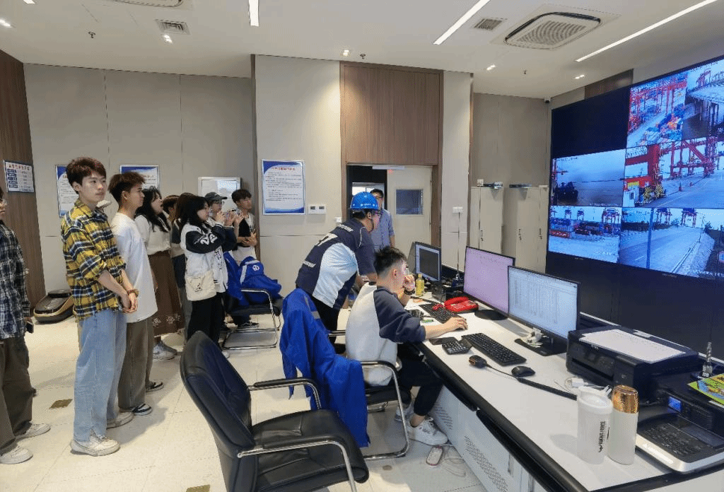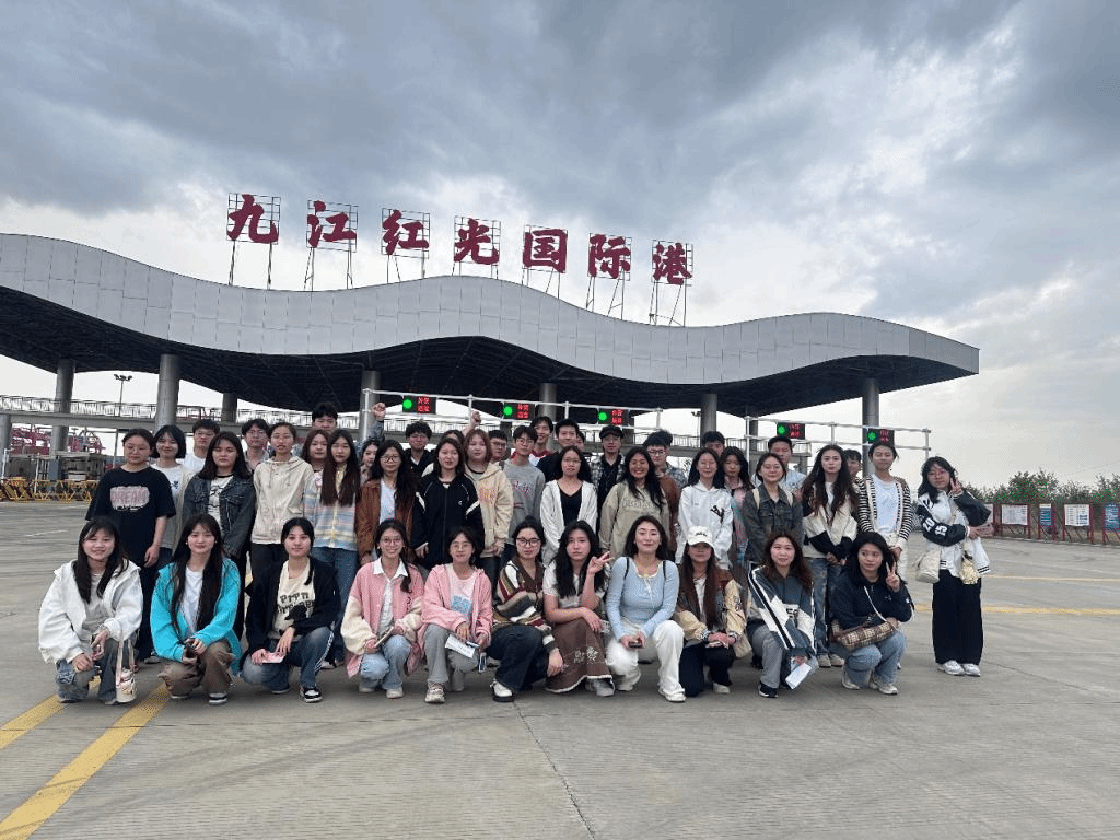 4月10日下午,师生们首先来到了九江红光国际港。作为区域内重要的水运物流中心,九江红光国际港展示了现代化港口的运作流程和先进的物流技术。学生们在港口工作人员的引导下,参观了货物的装卸区、集装箱堆场,并听取了关于港口日常运营的详细介绍。此次活动使学生们对国际贸易的物流环节有了更加直观的感受,对港口在促进地区经济发展中的作用有了更深刻的认识。