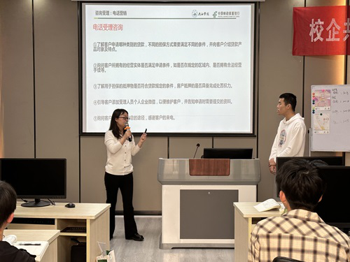 《商业银行业务与经营》是我校首批校企合作立项共建课程,由我院课程团队与邮储银行九江支行实务专家团队共同建设。本次课采取校银双方双师同堂的方式完成。