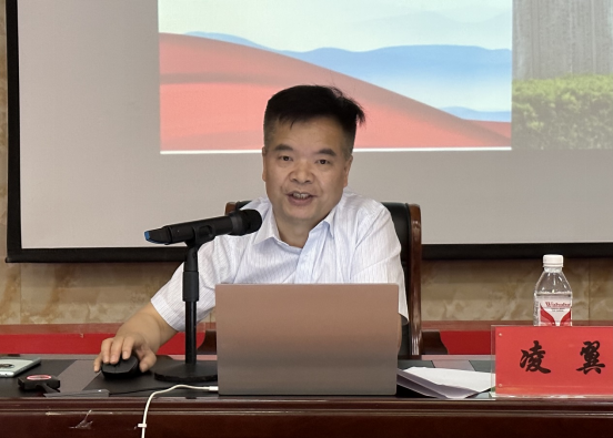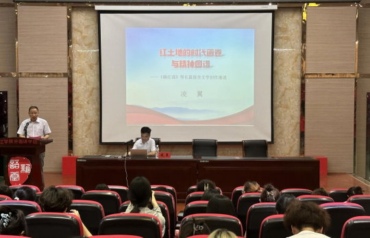 为进一步加强学生的思想政治教育,落实立德树人根本任务,引导青年学生传承红色基因,赓续红色血脉,增强文化自信。5月29日下午,永利y23455关工委特邀中国作家协会会员、江西省作协报告文学专业委员会主任、九江市作家协会副主席凌翼作题为“红土地的时代画卷与精神图谱—《赣红谣》等长篇报告文学创作漫谈”的专题讲座。永利y23455党委书记漆晗东、外国语学院党委书记袁宜如、两院教师及学生代表300余人共同聆听了讲座。讲座由永利y23455党委书记漆晗东主持。