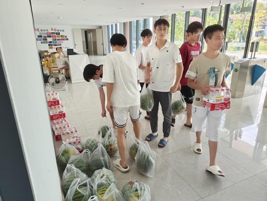 漆书记一行人先后来到学生宿舍和教学楼,与学生进行深入交流,了解大家平时的生活情况和学习状态,耐心倾听学生们对各类情况的诉求与建议。在提醒同学们做好防暑降温工作的同时,送来了清甜的西瓜和防暑降温大礼包。