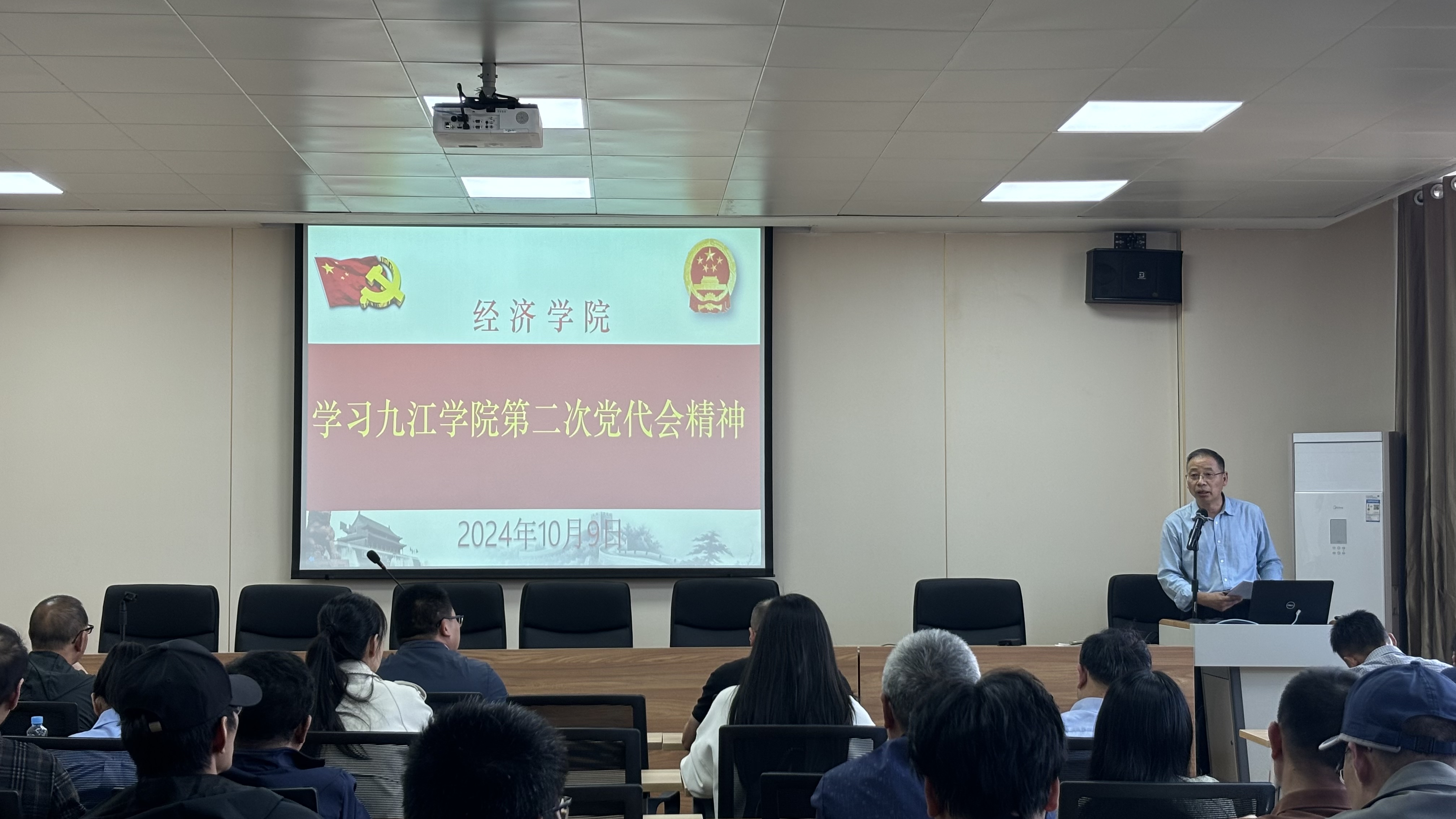 会上,漆书记首先介绍了学校第二次党代会胜利召开的盛况,重点传达了学院党委书记李明斌同志代表中共九江学院委员会向大会作题为《改革创新 发奋图强 开启建设特色鲜明高水平应用型大学新征程》的工作报告的主要内容。