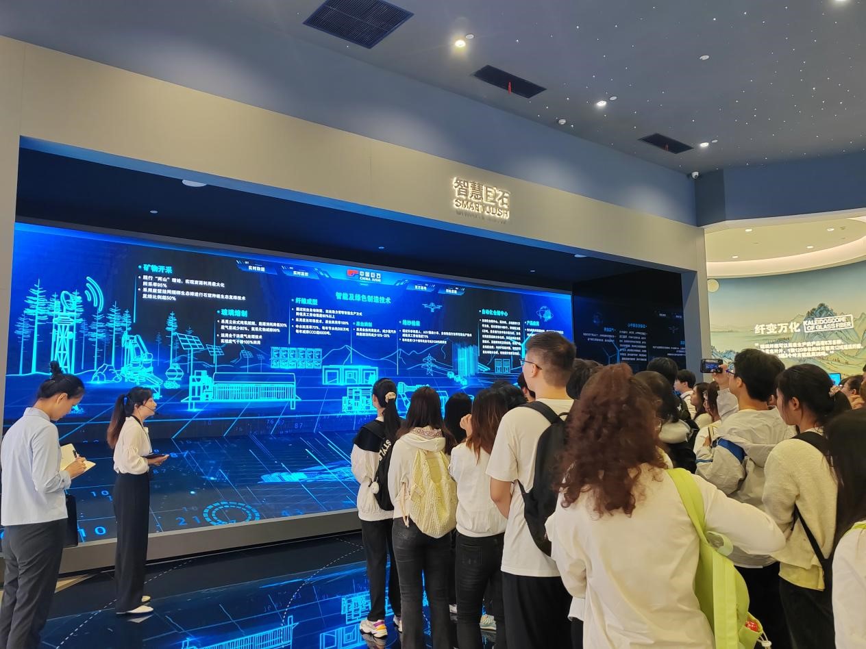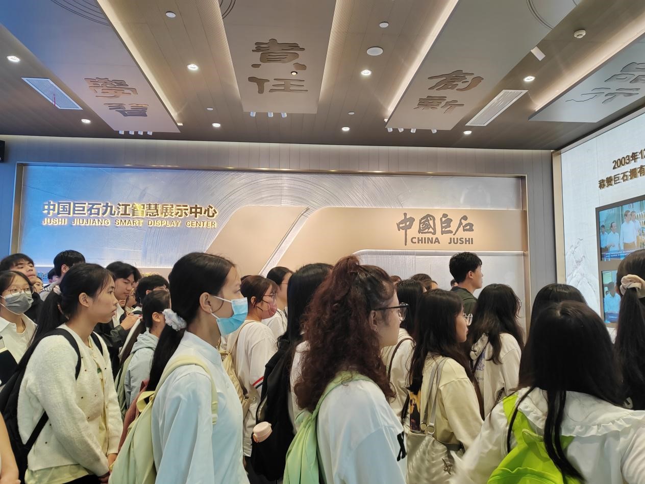 巨石集团九江有限公司是巨石集团有限公司的全资子公司,公司在江西省九江市出口加工区建有年产35万吨玻纤生产基地,占地面积615亩,总投资47.3亿元,公司现有职工1900余人,属于全球前列的玻纤生产企业。学生们在负责人老师的带领下,走进企业,参观了生产车间、办公区域等。企业负责人详细介绍了企业的发展历程、业务范围和人才需求。学生们积极提问,与企业人员进行了深入交流。