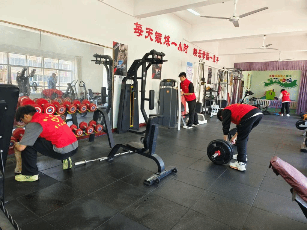 活动当天,按照事先分工,青年志愿者们首先准备清洁工具,接着完成了清扫地面和擦拭健身器材的工作,然后将清洁工具清洗干净并归位,最后检查整个健身房是否没有遗漏的赃污部分。志愿者们用自己的实际行动,为社区居民营造一个良好的健身氛围。