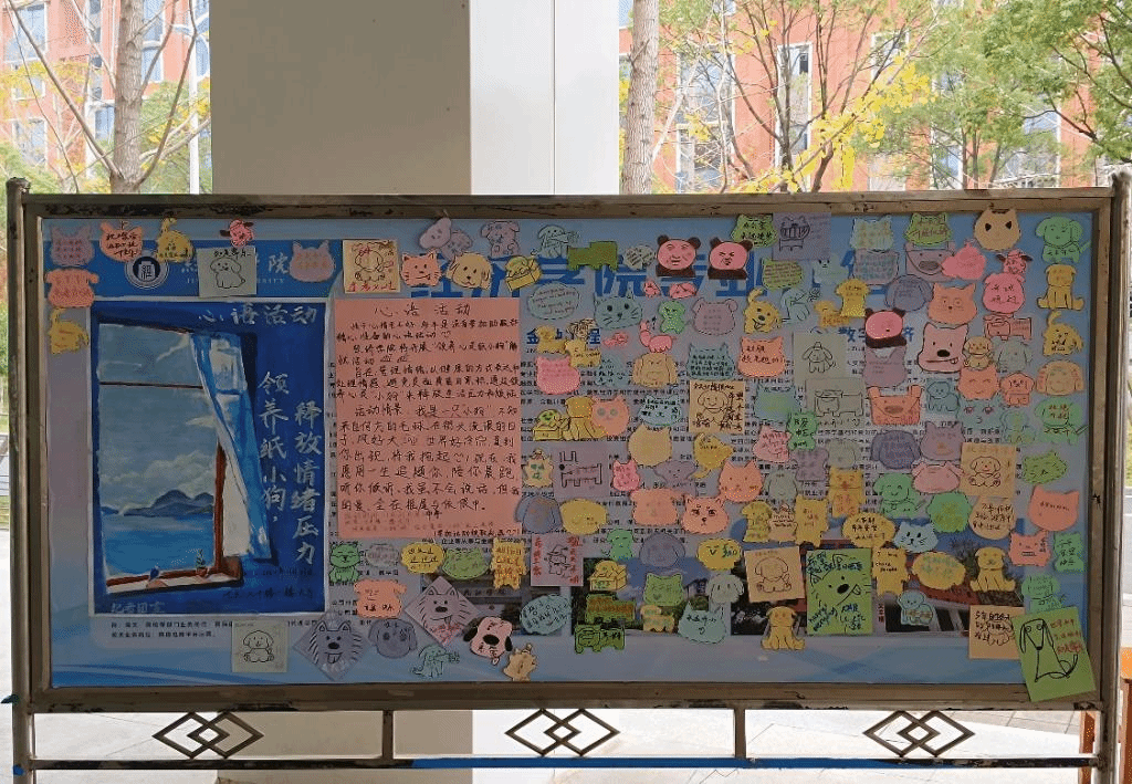 活动现场,同学们纷纷拿起笔,将自己的心愿、祝福、或是对生活的感悟写在色彩斑斓的便利贴上。小狗形状的便利贴被贴满了整个展板,形成了一道独特的风景线。这些便利贴不仅承载了参与者们的心声,也搭建起了一座沟通的桥梁,让人们在忙碌的生活中找到共鸣与温暖。