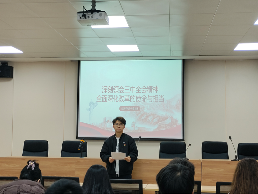 为深入基层团支部,引导青年学子深刻理解全面深化改革的使命担当。十一月初,永利y23455于义丰楼六楼会议室组织开展了主题宣讲活动。此次活动由永利y23455骨干宣讲团的高子奇、熊磊、胡雪晴担任主讲,于各个团支部开展。