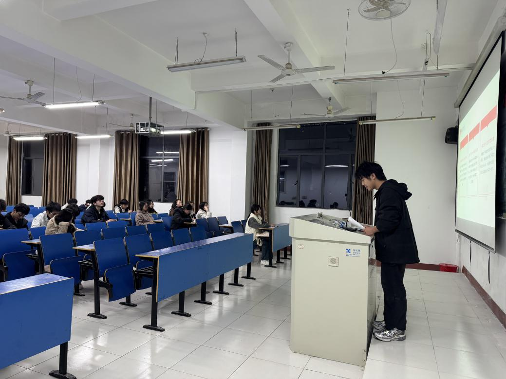 主讲人围绕党的二十大历史方位、核心内容及青年责任展开系统阐释,结合新时代十年的伟大变革与中国式现代化理论,强调党的二十大是全党全国各族人民迈上全面建设社会主义现代化国家新征程的关键节点。宣讲中,主讲人重点解读了二十大报告提出的“五个重大原则”“三个务必”“中国式现代化九项本质要求”等核心内容,通过对比“两个结合”“六个必须坚持”等理论创新亮点,系统梳理了从党的十九大到党的二十大战略部署演变。同时,主讲人通过问答环节进一步激发了同学们的思考,并号召同学们做“理想者、奋斗者、担当者、吃苦者”,现场同学积极参与讨论,纷纷表示要将个人理想融入国家发展大局。