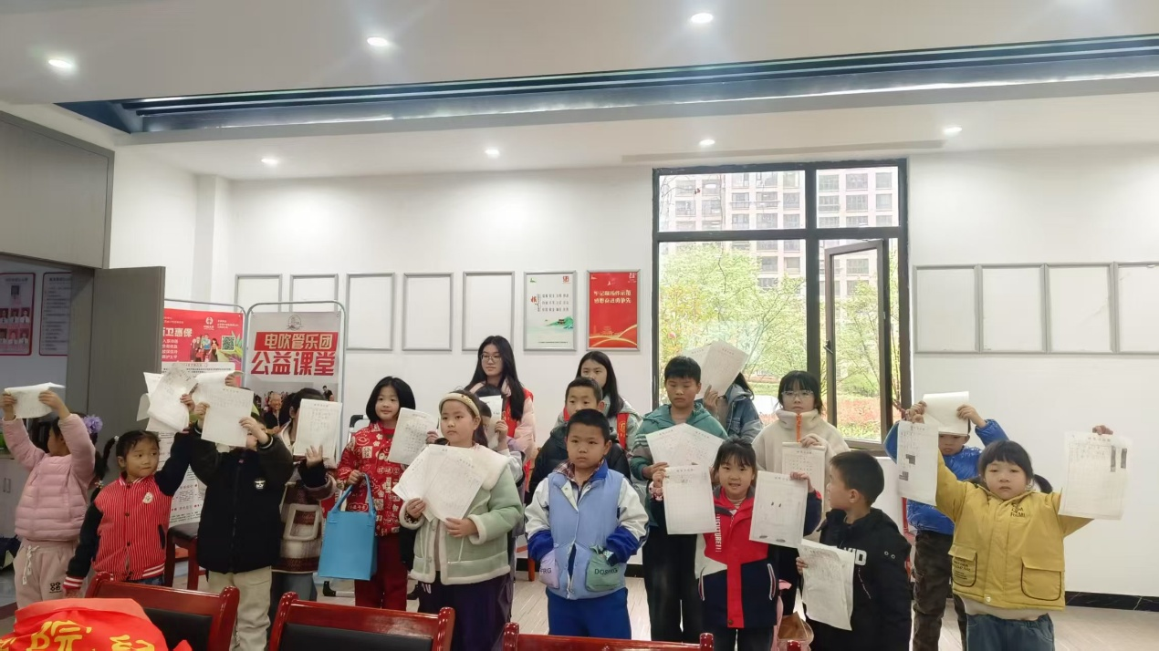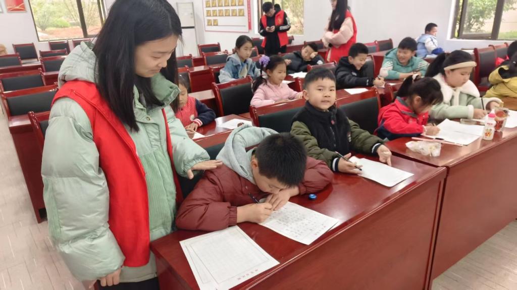 活动内容丰富多元,亮点纷呈。在课业辅导区,志愿者针对孩子们的薄弱学科耐心答疑,助力知识巩固;书法课堂更是掀起热潮,志愿者从握笔姿势教起,一撇一捺示范楷书笔画,讲述汉字背后的文化故事。孩子们沉浸墨香,认真临摹,在横竖撇捺间感受传统文化魅力。