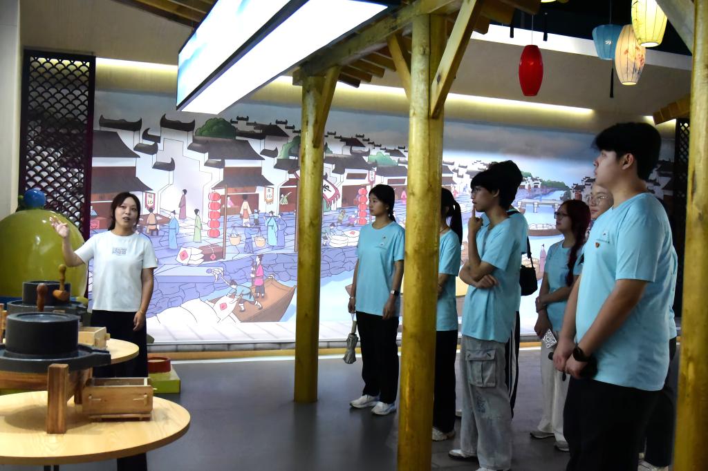 在流芳豆文化产业园,服务队先后参观了豆立方游客中心、电商中心和豆制品加工基地。跟随工作人员的讲解,“三下乡”成员了解到各类豆制品及大豆的生长过程。据工作人员介绍,流芳乡依托当地豆类种植传统,打造了集种植、加工、销售、文旅于一体的产业链,不仅带动了村民就业增收,更让传统豆文化焕发新生。同学们深入车间,观察豆制品自动化生产流程,与农户和企业负责人交流,直观感受到特色产业对乡村振兴的推动作用。