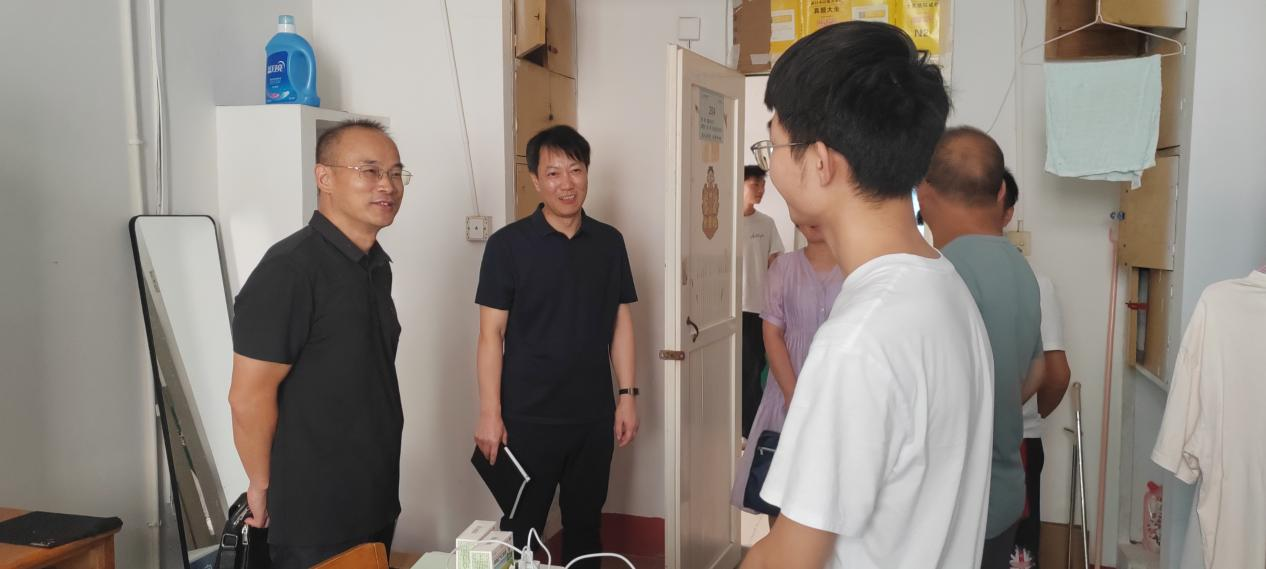 暑假期间,校园虽稍显静谧,但留校学子的学习生活始终牵动着学院的心。7月31日,永利y23455党委书记宛华圣、院长项益才带领全体领导班子成员在学生科负责人及辅导员陪同下,深入学生宿舍开展走访慰问活动,为留校学生送去关怀与鼓励,让夏日校园洋溢着浓浓温情。