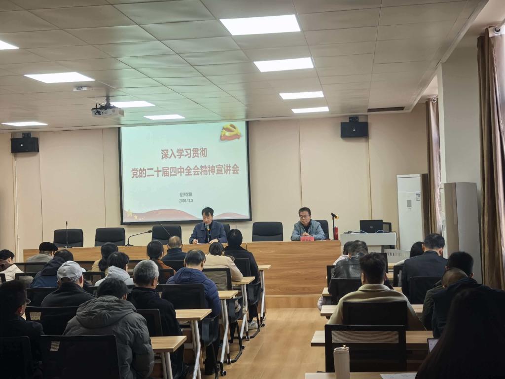 最后,学院党委书记宛华圣作总结讲话。他强调,学习贯彻党的二十届四中全会精神是当前和今后一个时期的重要政治任务,全院师生要持续深化学习领悟,深刻把握"两个确立"的决定性意义。要将全会精神与学院学科建设、人才培养、科研创新等工作深度融合,对标经济领域重大战略需求,强化特色学科优势,提升人才培养质量。要切实把学习成果转化为攻坚克难、干事创业的强大动力,凝聚起全院上下团结奋进的磅礴力量,以实干担当推动学院各项事业高质量发展,为服务中国式现代化建设贡献经济学科的智慧和力量。
