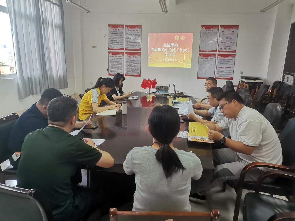 6月14日下午,永利y23455在义丰楼619会议室召开党委理论中心组第六次(扩大)学习会议,党委书记漆晗东主持会议,院长项益才、党委副书记谢忠、副院长李华、各支部书记参加了此次学习会。