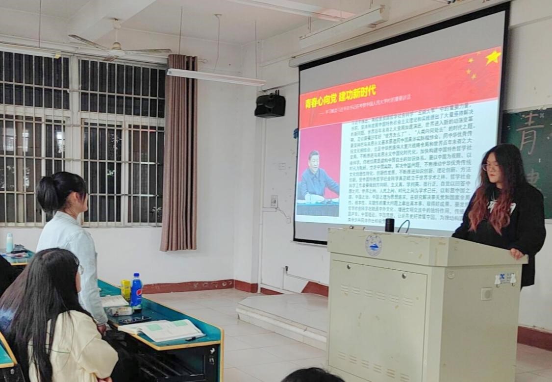 活动伊始,主讲人带领同学们回顾了党的历史征程,学习了习近平总书记在中国人民大学考察时的重要讲话学习,呼吁同学们用脚步丈量祖国大地,用眼睛发现中国精神,用耳朵倾听人民呼声,用内心感应时代脉搏。同学们感触颇深,踊跃发言。