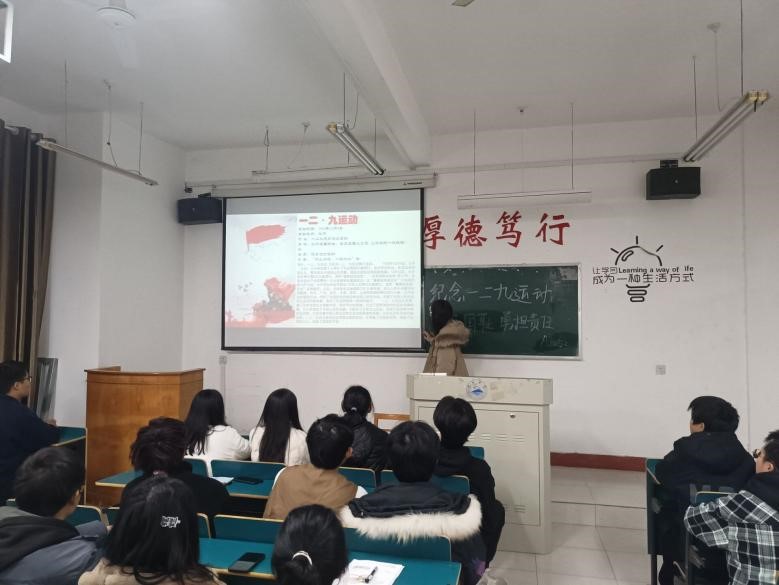 为弘扬革命精神,提高青年学生的责任意识,12月8日晚,永利y23455于义丰楼组织开展了以“一二九运动”为主题的班会。本次主题班会活动由各班团支书主讲,永利y23455部分学生参加。
