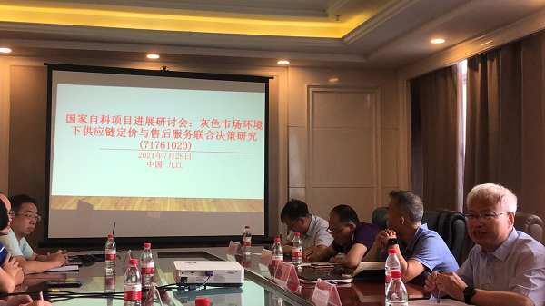 2021年7月26日下午,在yl23455永利集团濂溪宾馆会议室,依托洪定军副教授主持的国家自然科学基金地区项目“灰色市场环境下供应链定价与售后服务联合决策研究(71761020)”,召开项目进展及成果汇报研讨会。