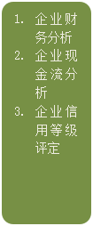 掌握银行信用评级的方法,能熟练正确的运用指标,客观的对企业做出信用等级评定。 |